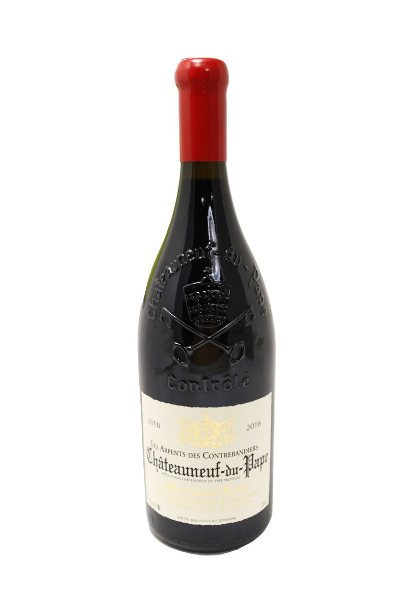 Vin rouge de la Vallée du Rhône appellation Châteauneuf-du-Pape, Mas Saint-Louis Les Arpents des Contrebandiers 2018 (magnum) allie fruit noir mûr, tanins soyeux, fraîcheur bien tenue et une finale longue aux accents de garrigue.