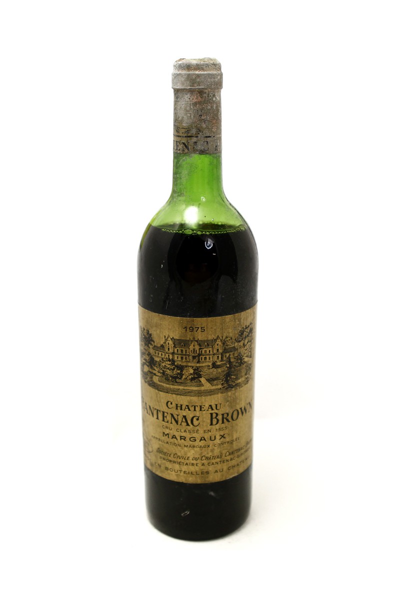 Vin de Bordeaux appellation Margaux, le Château Cantenac Brown 1975 (3e Grand Cru Classé) est un rouge à maturité avancée : bouquet tertiaire (cèdre, tabac blond, sous-bois), tanins fondus, corps élancé et finale fine.